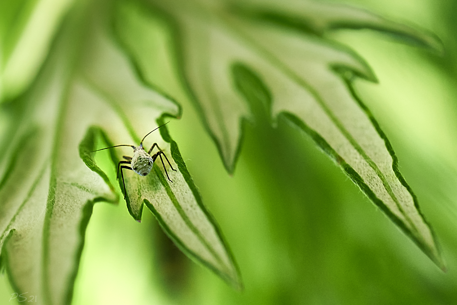 Die Struktur der Pflanze hatte meinen Blick gefesselt, der kleine Käfer war eine nette Zugabe.