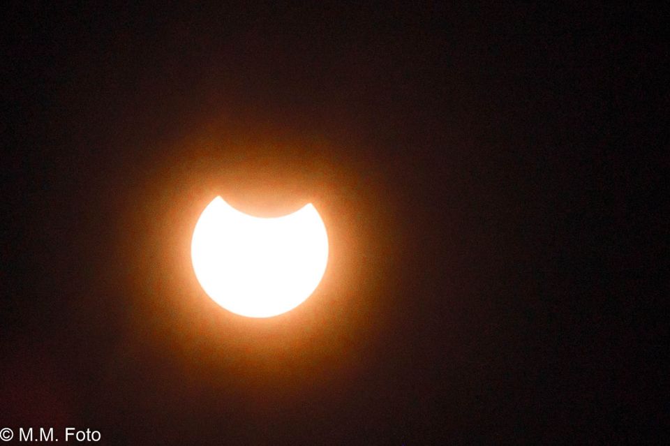 Heute habe ich meine erste Teilsonnenfinsternis fotografiert. Damit alles funktioniert, mussten alle Graufilter zum Einsatz kommen und damit war die Kamera erst einmal "blind". Um meine Augenzu schonen, wagte ich nur einen Blick durch den Sucher. Es wäre bestimmt spannender gewesen, an eine schöne Fotolocation zu gehen, um auch noch Landschaft mit aufs Foto zu bekommen. Das mache ich vielleicht bei der nächsten Finsternis am 25. Oktober 2022 in Deutschland.