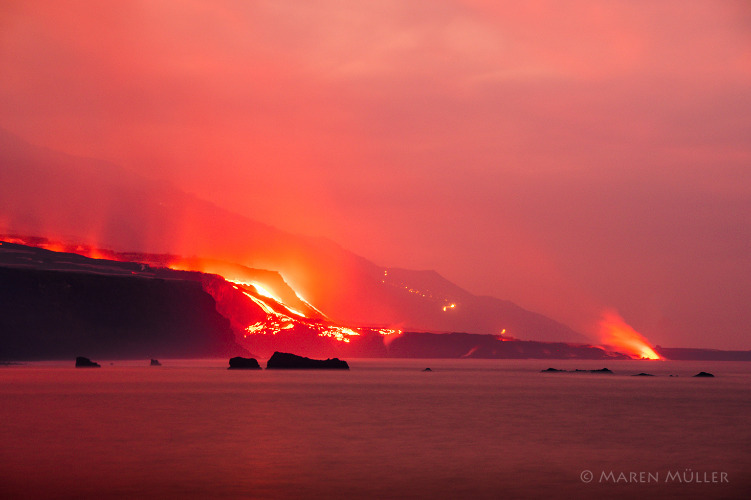 Glühende Lava fließt ins Meer