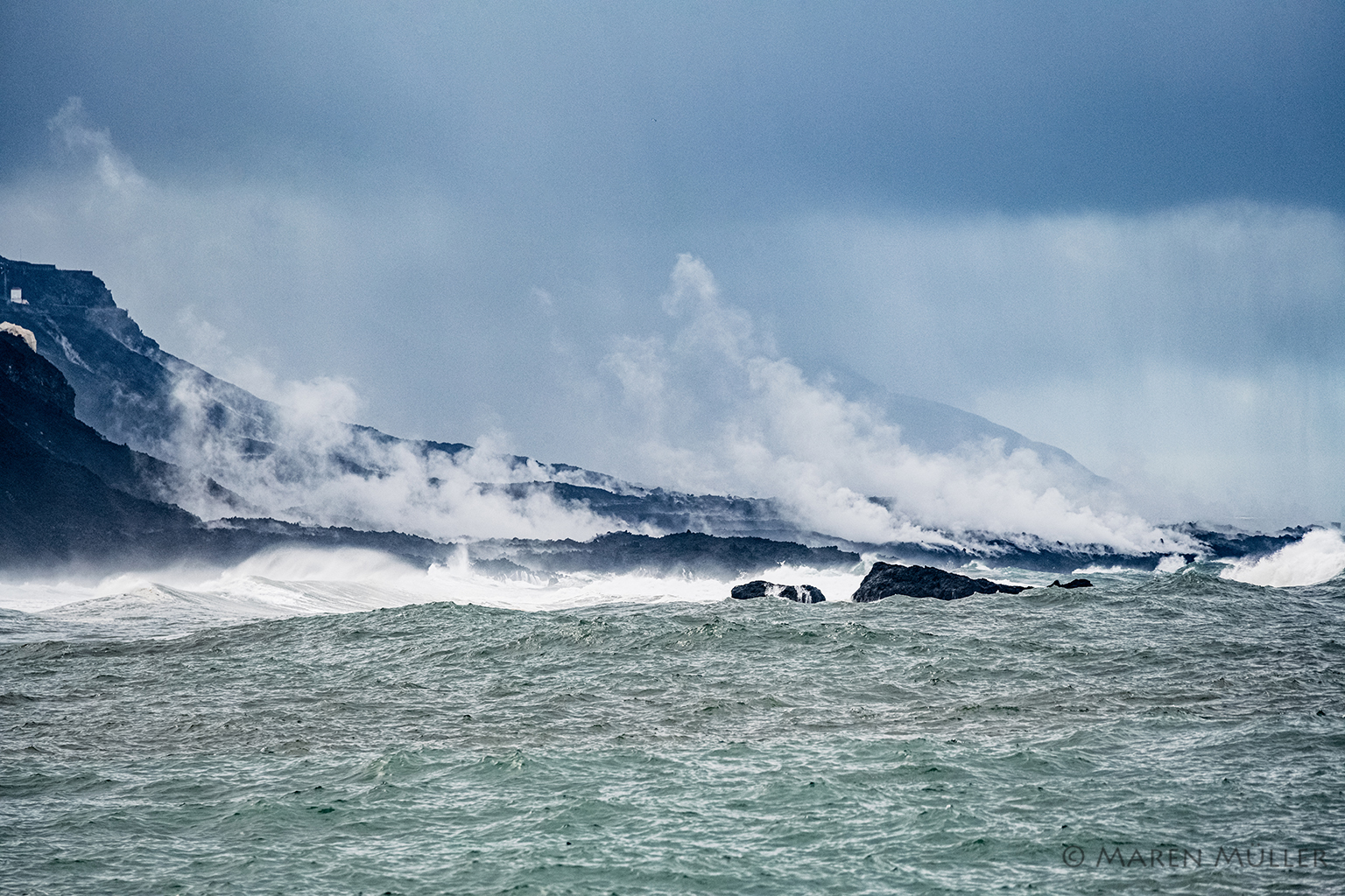 Warme Lava und kaltes Wasser